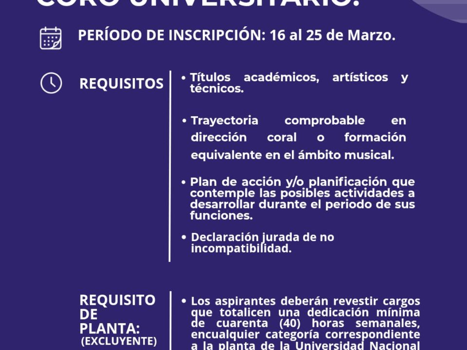 📣 CONVOCATORIA: PARA LA ELECCIÓN DE DIRECCIÓN DEL CORO UNIVERSITARIO. 🗓️ ¿Cuándo inscribirse? Del 16 al 25 de marzo. 📝 ¿Cómo inscribirse? La postulación se realiza […]
