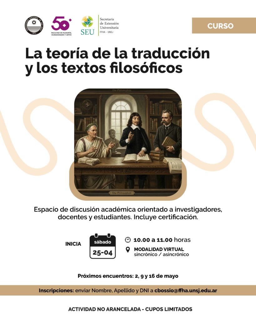 CURSO LA TEORÍA DE LA TRADUCCIÓN Y LOS TEXTOS FILOSÓFICOS. 25 ABR